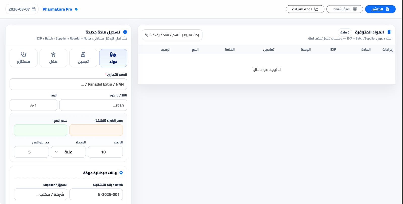 نظام PharmaCare Pro المتكامل لإدارة الصيدليات (POS + مخازن)