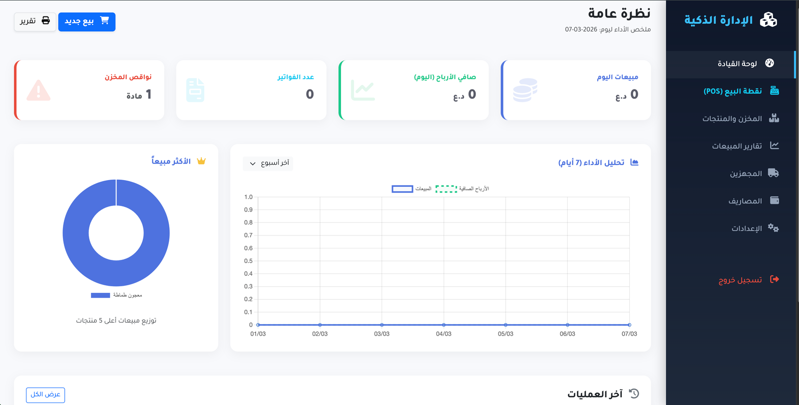 لوحة تحكم شاملة (Dashboard): تقارير مالية دقيقة، أرباح، ومبيعات يومية وشهرية بضغطة زر.