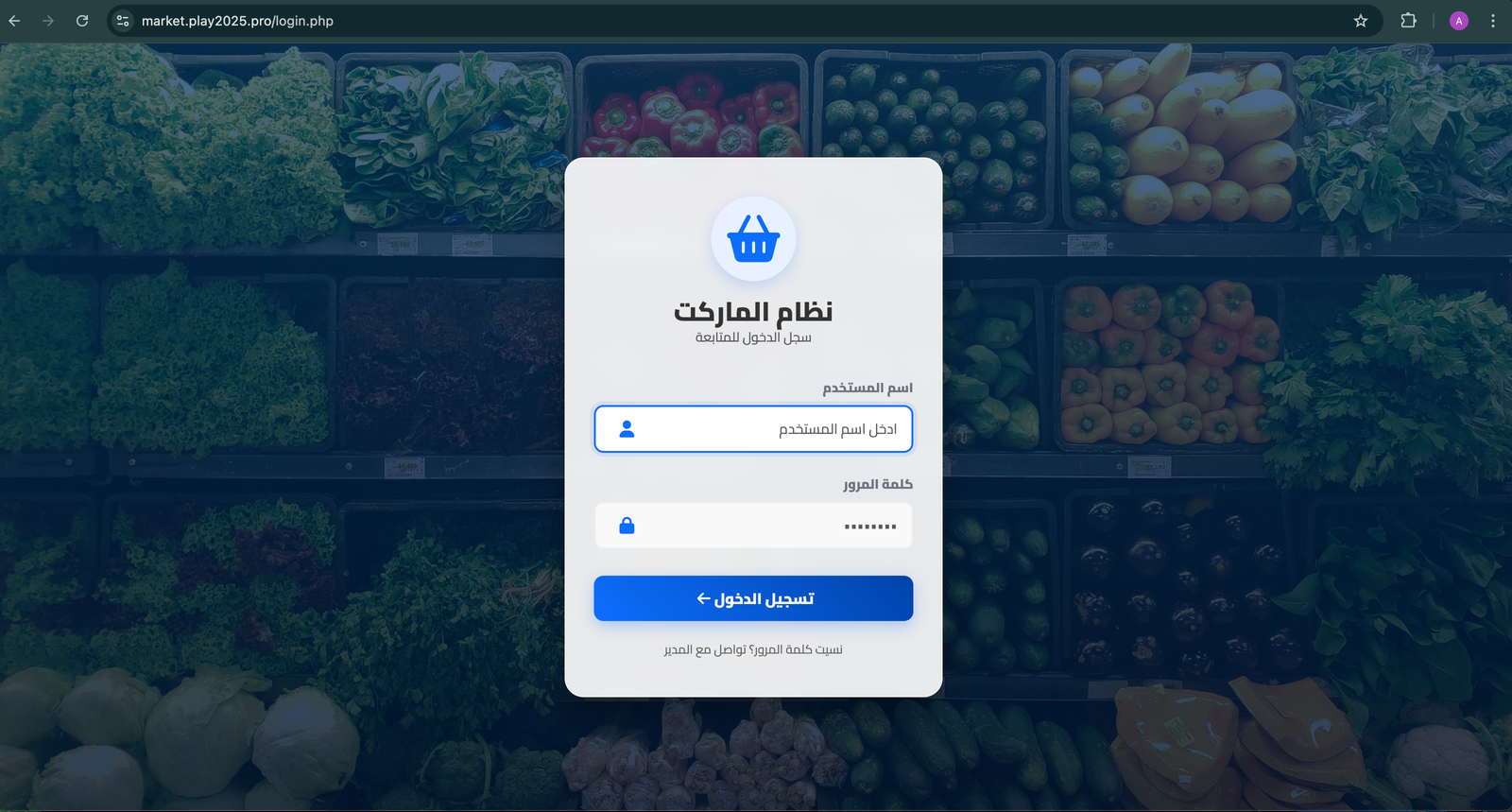 بيانات الديمو (للتجربة): الرابط: [https://market.play2025.pro ] يوزر: admin | باسورد: 123456