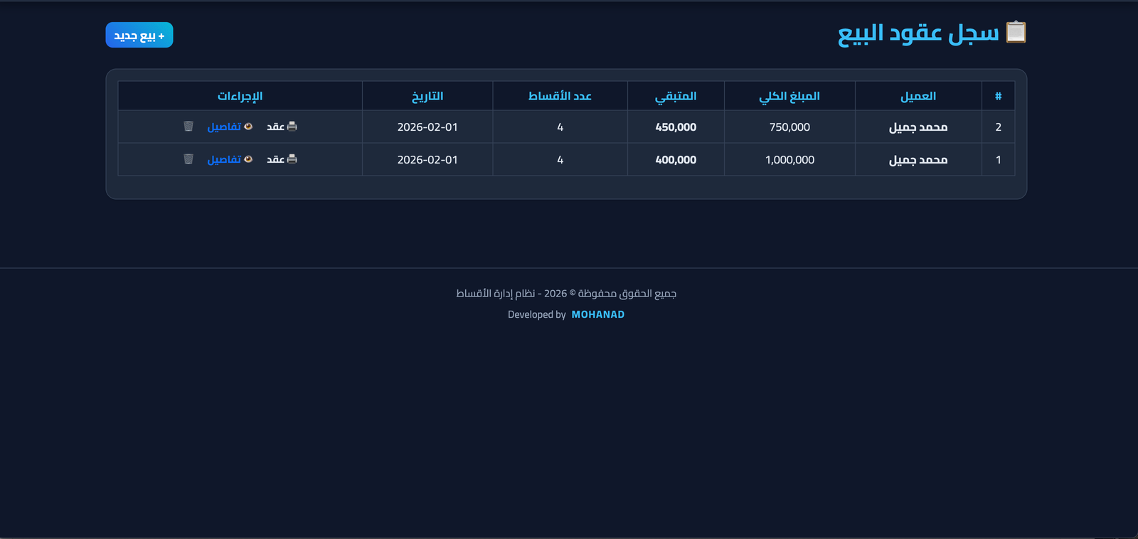 نظام إدارة الأقساط والمبيعات المتكامل (للمحلات والشركات)