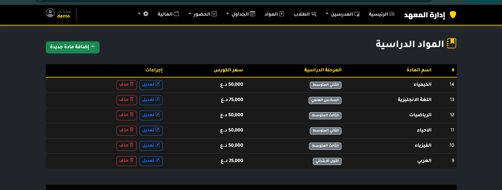 نظام إدارة المعاهد التعليمية هو لوحة تحكم متكاملة صُممت لتسهيل إدارة المعاهد والدورات التعليمية بشكل احترافي ومنظم.